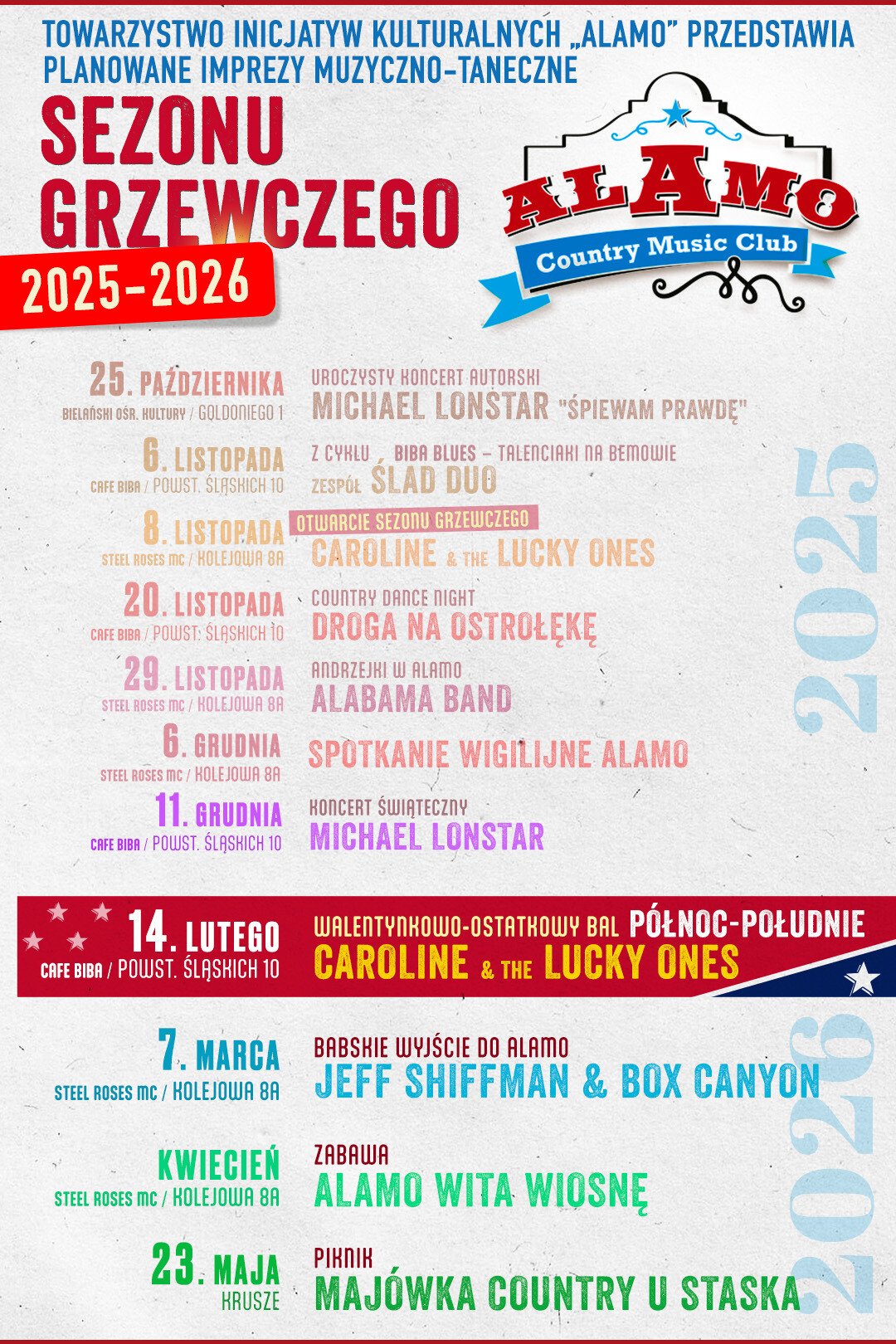CMC Alamo w obecnym składzie działa od kilku lat, a jego historia sięga czasów, gdy animator koncertów i wydarzeń countrowych Stanisław "Stasek" Kruszyński i skupione wokół niego grono przyjaciół znaleźli przyjazne muzyce miejsce na Warszawskim Bródnie, w restauracji Milano. Nazwę natychmiast przemianowano na bliższą naszym celom obrony wartości kulturalnych, czyli ALAMO i tak zostało.